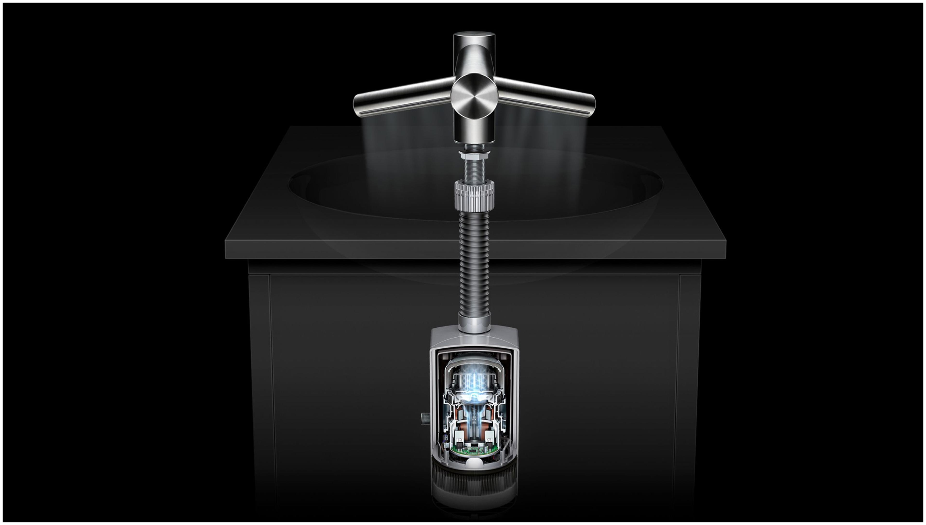 Rửa và lau khô tay tại bồn rửa. Máy sấy tay Dyson Airblade Wash + Dry tự động chuyển đổi giữa nước và không khí, không cần chạm vào vòi hoặc nút bẩn.