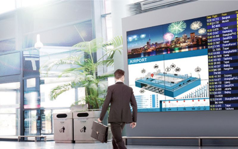 Thông tin hành khách và hướng dẫn: Trong các cảng hàng không, ga tàu hoặc trung tâm mua sắm lớn, màn hình ghép LG có thể được sử dụng để cung cấp thông tin hành khách, lịch trình, hướng dẫn đi lại, hoặc thông tin sự kiện.