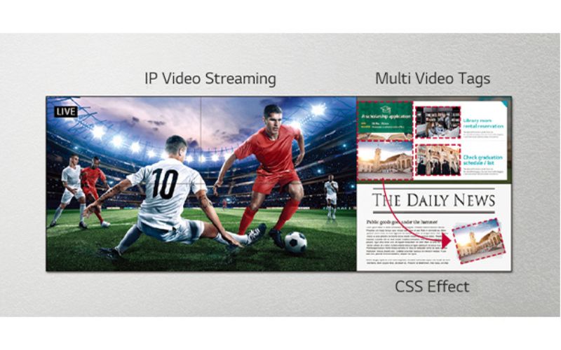 Màn hình ghép LG 55 inch 55VM5J-H là một trong những lựa chọn hàng đầu cho các ứng dụng hiển thị nội dung quảng cáo, thông tin, và giải trí công cộng. Dưới đây là một số ưu điểm nổi bật của sản phẩm này: