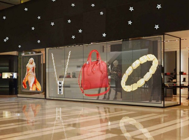 1.Quảng cáo và trưng bày sản phẩm: Màn hình LED trong suốt thường được sử dụng trong quảng cáo và trưng bày sản phẩm tại các cửa hàng, trung tâm mua sắm và triển lãm. Nhờ tính thẩm mỹ cao và khả năng trình diễn hình ảnh và video một cách ấn tượng, nó thu hút sự chú ý của khách hàng và giúp tăng hiệu quả quảng cáo.