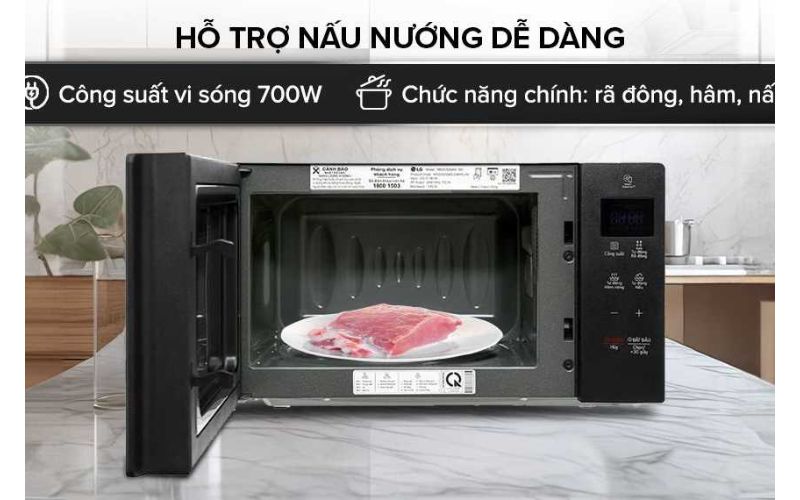 Vi sóng LG sử dụng công nghệ Inverter giúp nhiệt truyền đều hơn, không “giật nhiệt” như nhiều dòng đời cũ. Điều này vừa tăng hiệu quả nấu – vừa giảm tải linh kiện.