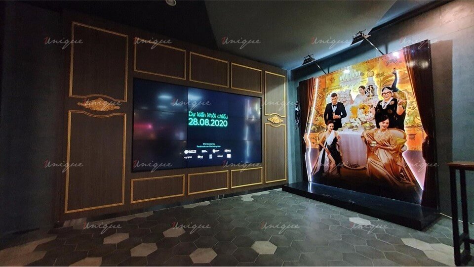 - Ứng dụng tại rạp chiếu phim: Ở quầy bán vé hoặc sảnh chờ ở rạp chiếu phim sẽ được sử dụng màn hình ghép quảng cáo để trình chiếu các chương trình khuyến mại, trailer của các phim sắp chiếu.