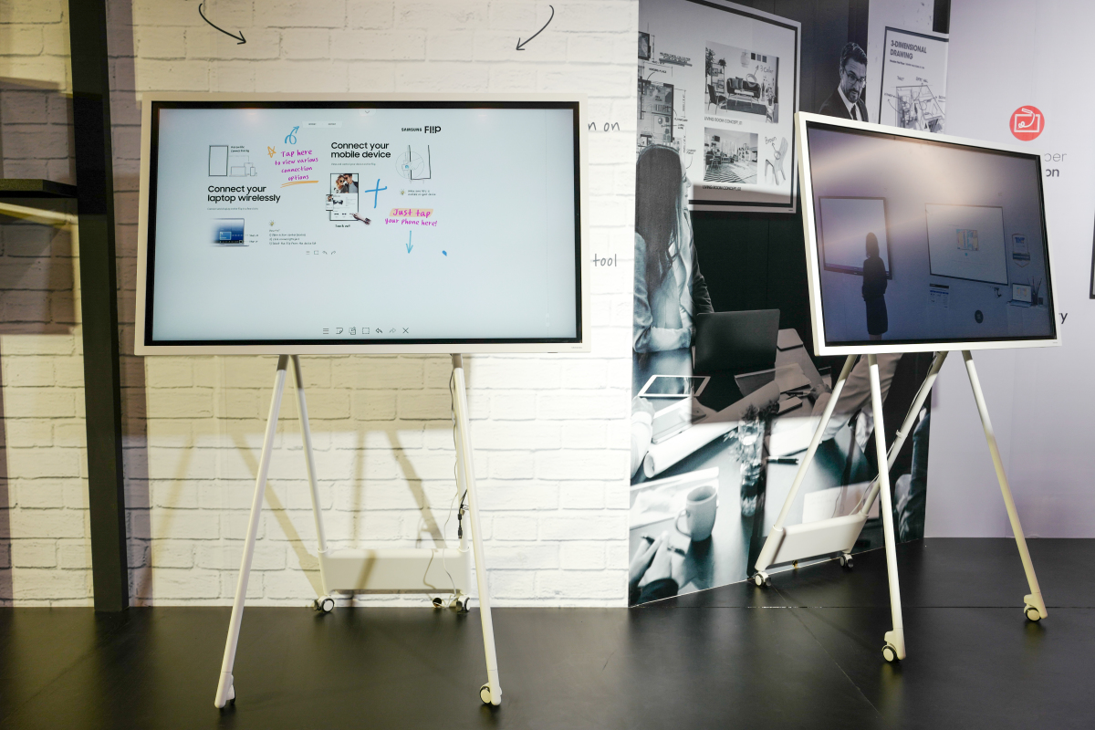 Một cách để khắc phục là nhấn và giữ nút nguồn để tắt màn hình tương tác. Tuy nhiên, tránh sử dụng gạt công tắc ở mặt sau hoặc rút đột ngột dây cắm, vì hành động này có thể gây mất điện đột ngột, ảnh hưởng đến phần cứng. Sau đó, sử dụng khăn mềm để lau sạch bụi bẩn trên màn hình trước khi khởi động lại.