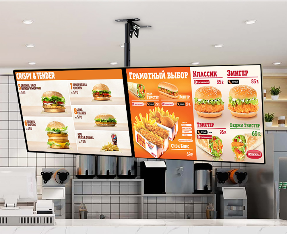 Thích Ứng Với Nhiều Ngữ Cảnh: Có sẵn trong nhiều kích thước và thiết kế, màn hình treo tường dễ dàng tích hợp vào nhiều không gian khác nhau như văn phòng, cửa hàng bán lẻ, hay nhà hàng.