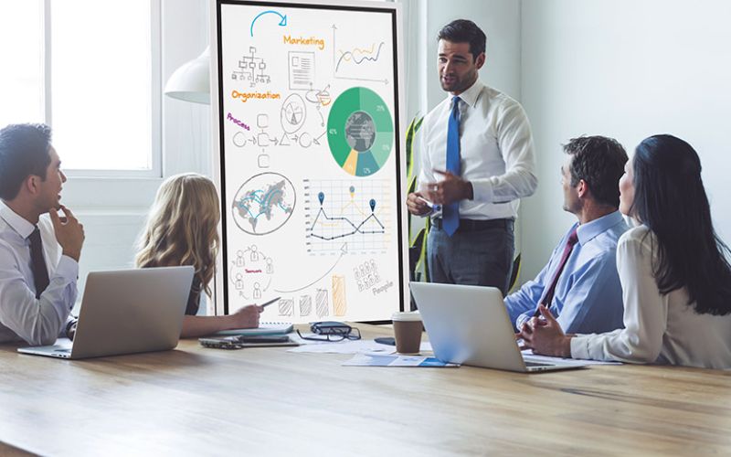 Một chiếc màn hình tương tác mạnh mẽ không chỉ hiển thị đẹp mà còn phải có tính năng hỗ trợ cho việc giảng dạy và họp trực tuyến.