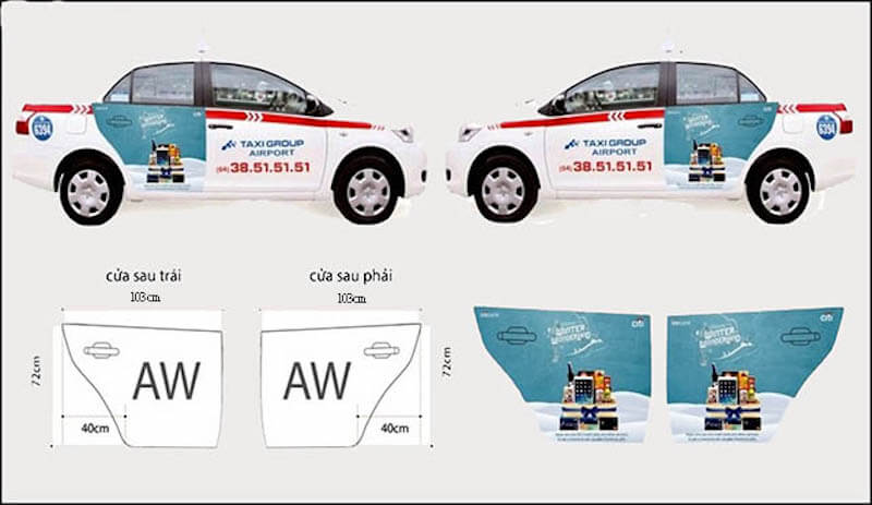 Quảng cáo trên phương tiện giao thông thường thực hiện thông qua việc dán decal trên các loại xe như xe buýt, xe tải, và taxi. Việc tạo maquette cho loại quảng cáo này cần tuân theo kích thước và vị trí cụ thể trên phương tiện để đảm bảo rằng hình ảnh sẽ không bị biến dạng và mất độ tương phản. Đồng thời, các đường cắt và vị trí dán decal cần phải được thiết kế một cách chính xác để truyền đạt đầy đủ thông tin và thông điệp quảng cáo.