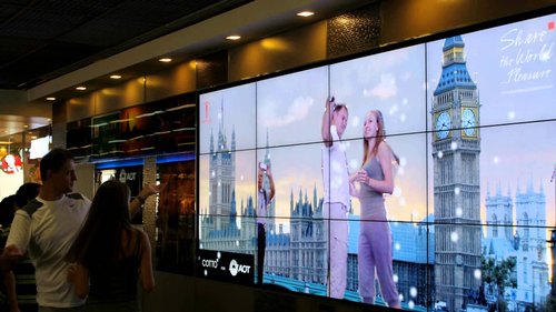 Màn hình LED quảng cáo trong nhà: Lắp đặt tại những địa điểm chiến lược như sân bay, nhà ga, trung tâm thương mại, siêu thị, rạp chiếu phim, giúp tiếp cận đông đảo khách hàng khi họ di chuyển xung quanh vị trí lắp đặt.