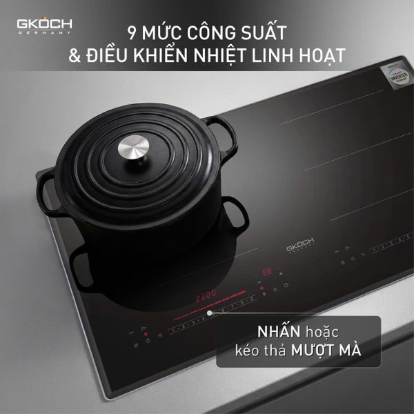 Bảng điều khiển thông minh: Cảm ứng trượt/nhấn nhạy bén với 9 mức công suất.